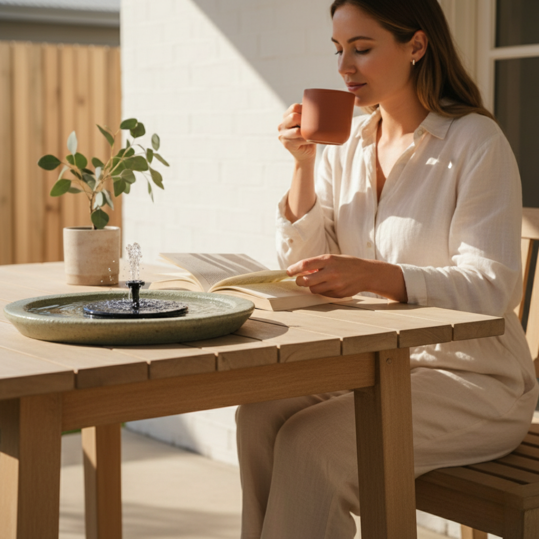 There’s that moment guests go quiet, notice the moving water, and say, “this looks amazing.” The gentle burble and glint at dusk read like designer décor, not a gadget. Because the fountain floats neatly, it looks tidy from every angle. Add a single candle or lantern nearby and it becomes the photo everyone takes. Compliments feel effortless because the scene looks curated without trying.